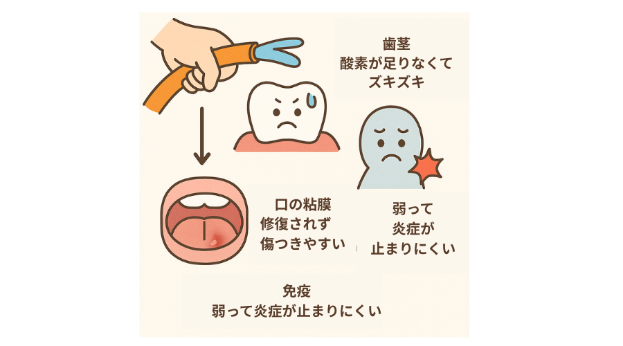 - 歯ぐきに酸素が届かず“ズキズキ痛む”